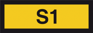 Feuerwehrschild "GG 1 (Gefahrengruppe 1)" in Aluminium geprägt.