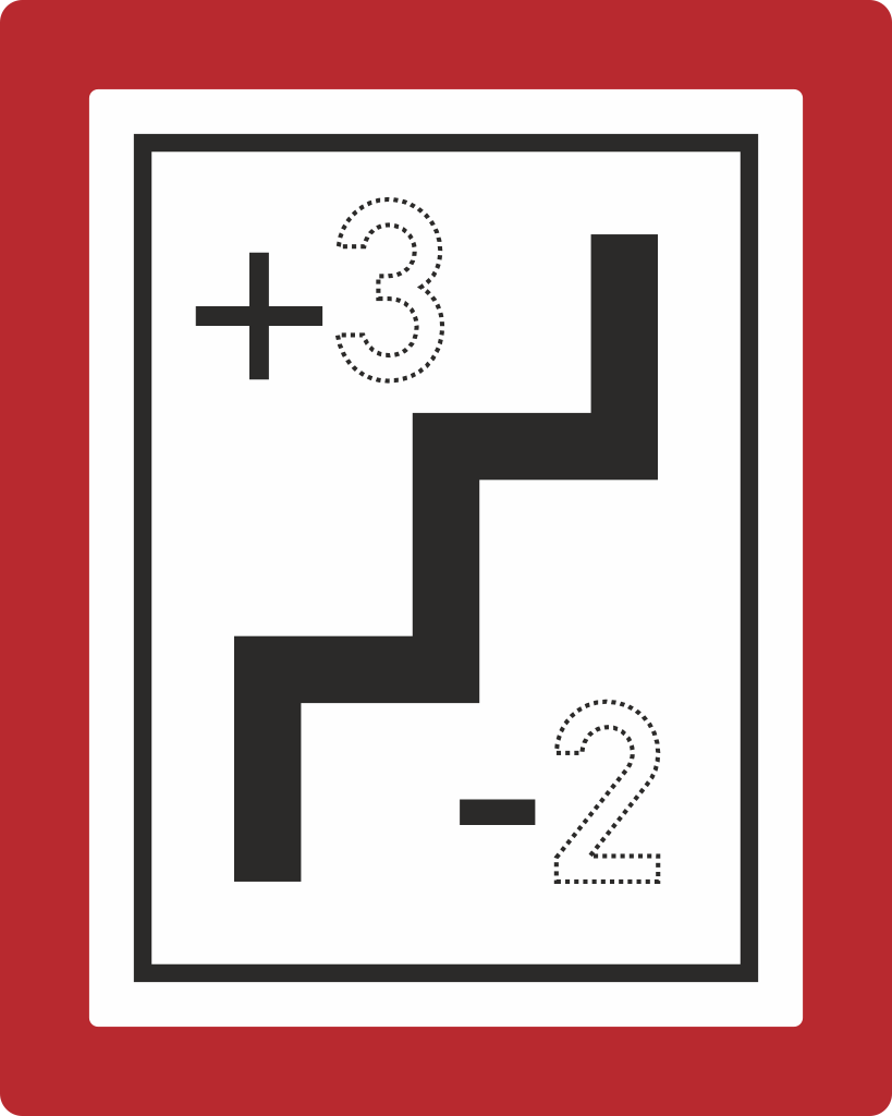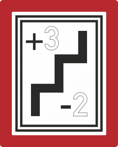 Das Schild gibt die Treppenraumnummer und die Anzahl der erreichbaren Geschosse nach oben und nach unten an.