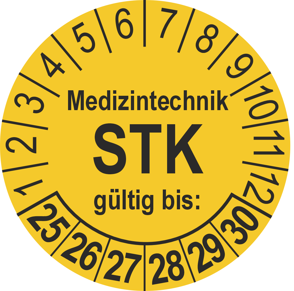 Man muss medizinische Geräte regelmäßig auf ihre Funktionstüchtigkeit und Sicherheit prüfen , um eine einwandfreie Patientenversorgung zu gewährleisten. Die Sicherheitstechnische Kontrolle (STK) ist eine gesetzlich vorgeschriebene Prüfung gemäß der Medizinprodukte-Betreiberverordnung (MPBetreibV). Mit der Prüfplakette „Medizintechnik STK gültig bis“ wird sichtbar dokumentiert, bis wann das Gerät geprüft und sicher verwendbar ist.