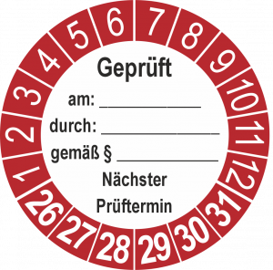 Mit dieser Prüfplakette lassen sich Wartungszyklen effizient organisieren und Prüfpflichten lückenlos dokumentieren. So bleiben Maschinen und Geräte immer einsatzbereit und erfüllen alle erforderlichen Sicherheitsstandards.