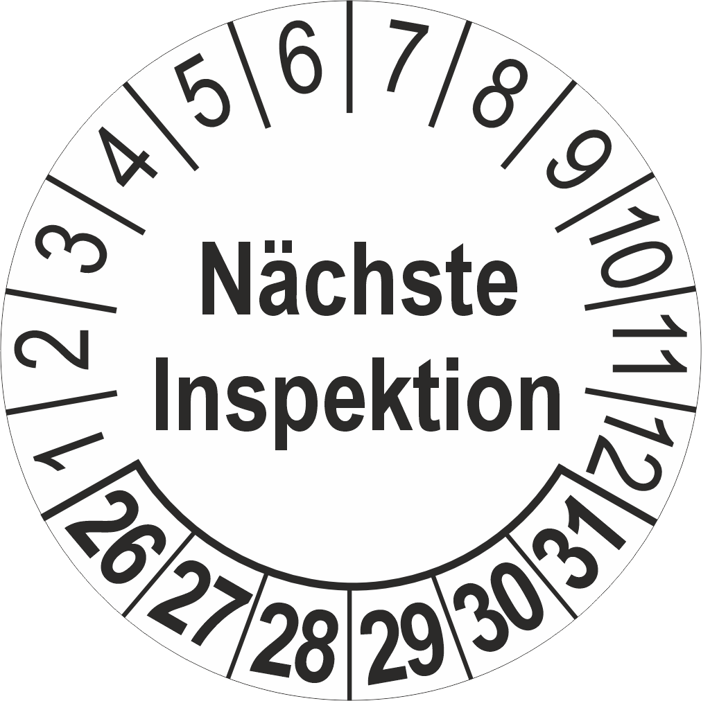 Ob Maschinen, Fahrzeuge oder technische Anlagen – regelmäßige Inspektionen sind essenziell, um die Betriebssicherheit und Funktionsfähigkeit sicherzustellen. Die Prüfplakette „Nächste Inspektion“ ermöglicht eine klare und übersichtliche Kennzeichnung des nächsten fälligen Prüftermins. So lassen sich Wartungsintervalle effizient verwalten und gesetzliche Vorgaben problemlos einhalten.