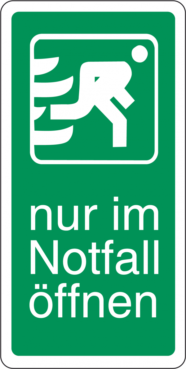 Ein Schild mit der Aufschrift Nur im Notfall öffnen schafft Ordnung und sorgt dafür, dass Fluchtwege im Ernstfall reibungslos funktionieren. Es trägt zur Sicherheit von Personen und Gebäuden gleichermaßen bei.