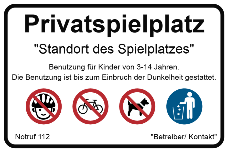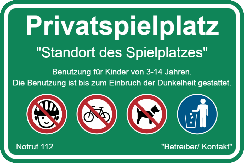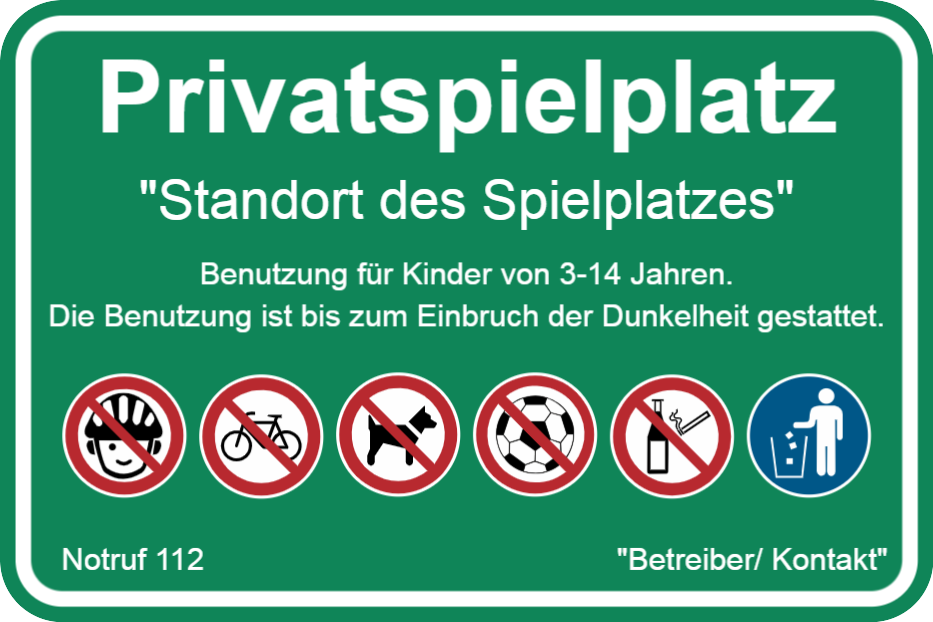 Warum ein Schild "Privatspielplatz - Kein öffentlicher Spielplatz - Für Kinder unter 12 Jahren Benutzung auf eigene Gefahr" wichtig ist?