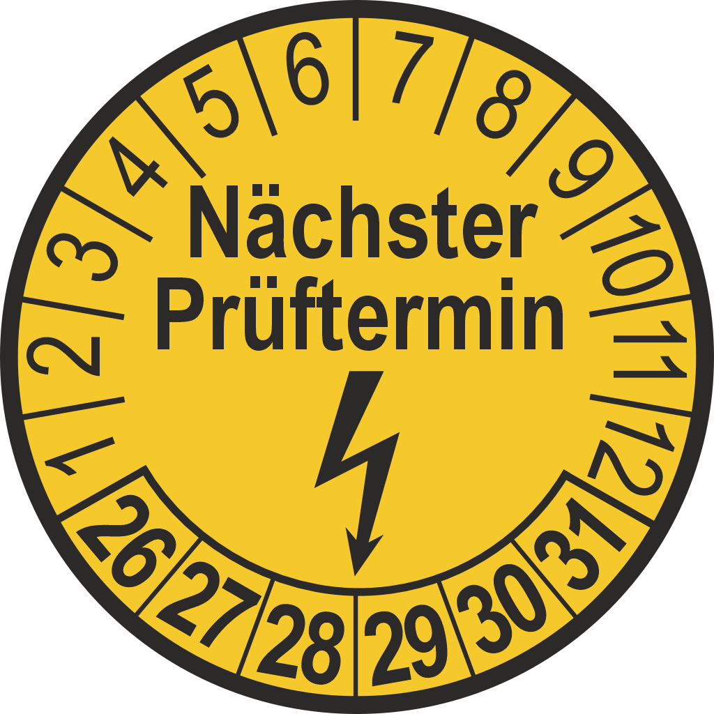 Die Prüfplakette mit Blitzpfeil ist eine praktische und effiziente Lösung zur Kennzeichnung von anstehenden Sicherheitsprüfungen für z.B. Elektrogeräte und -anlagen. Mit dem auffälligen Blitzpfeil bietet diese Plakette eine klare und sofort erkennbare Markierung, die den nächsten Prüftermin für Elektrogeräte anzeigt – eine wichtige Erinnerung, um alle gesetzlichen Anforderungen für Sicherheitsinspektionen zu erfüllen.