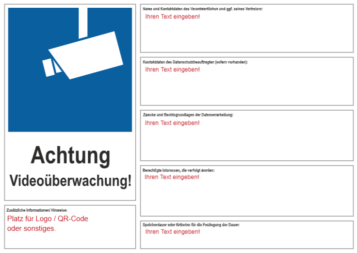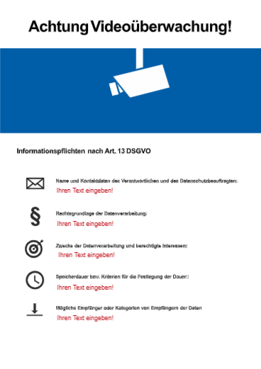 Videoüberwachung nach DSGVO Art. 13 (Text nach Wunsch)
